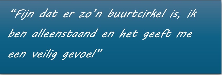 Een ‘Buurtcirkel’ is een sociaal netwerk van buurtbewoners in de directe omgeving die iets voor elkaar willen betekenen – zowel als het gaat om hulp aanbieden – als om hulp durven vragen. Iedereen kan deelnemen, ongeacht leeftijd. Een ‘Buurtcirkel’ bestaat uit maximaal 25 adressen, zodat het contact persoonlijk en overzichtelijk blijft.