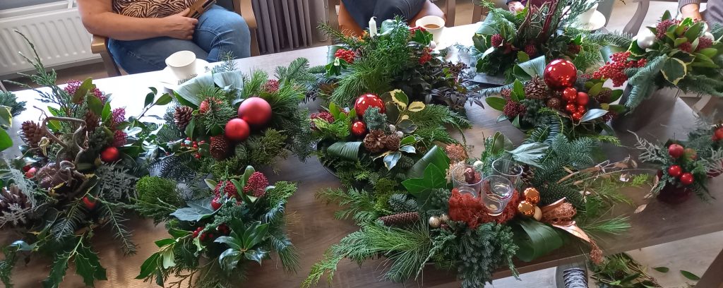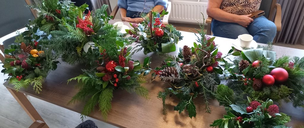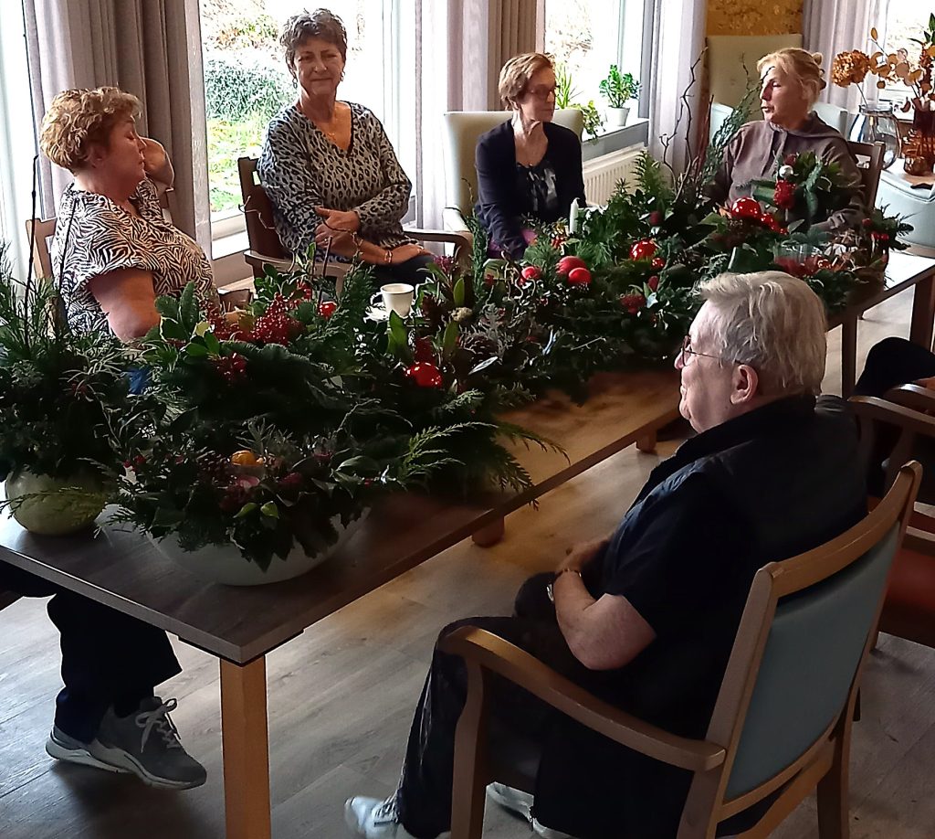 De 18 deelnemers aan het ‘Samen Kerststukjes maken’ zorgden op dinsdag 9 december voor ’n warme en gezellige kerstsfeer in ‘de Huiskamer’. Er werd volop gebuurt en na het opruimen nog lekker koffie gedronken. We zijn veel dank verschuldigd aan Susan Gubbels en Ria van Bussel.
