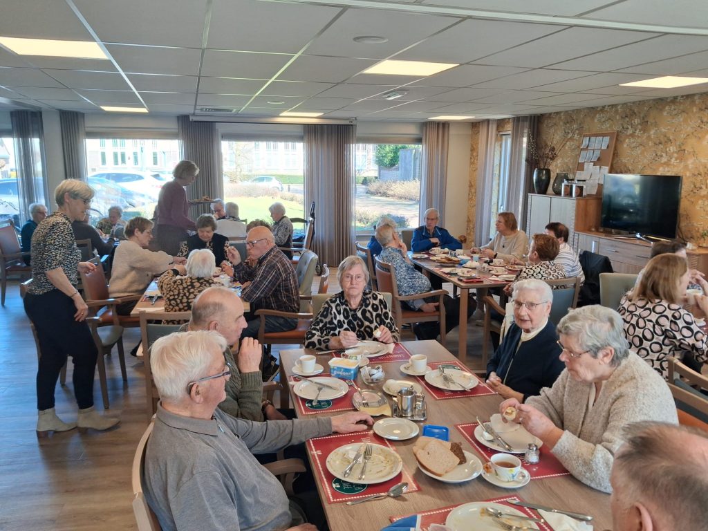 Woensdag 25 februari ging het eerste Lunchcafé van start. We mochten 26 gasten verwelkomen. Een zeer gevarieerd gezelschap zat aan tafel en genoot van een kroketbroodje, een eitje en verse courgettesoep, gemaakt door onze Dorpsondersteuner Marieke Linders. Verder was er nog keuze uit verschillende broodsoorten en beleg. Dat het gezellig was, dat was het zeker, want er werd flink gebuurt.